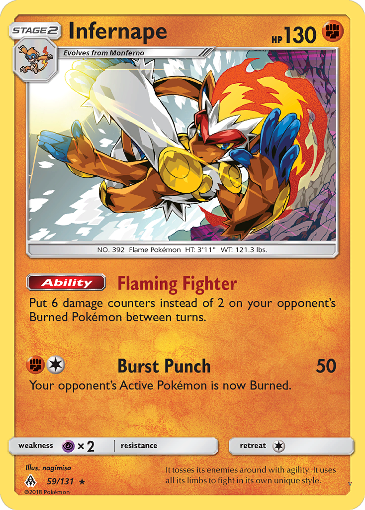 Put 6 damage counters instead of 2 on your opponent's Burned Pokémon between turns.