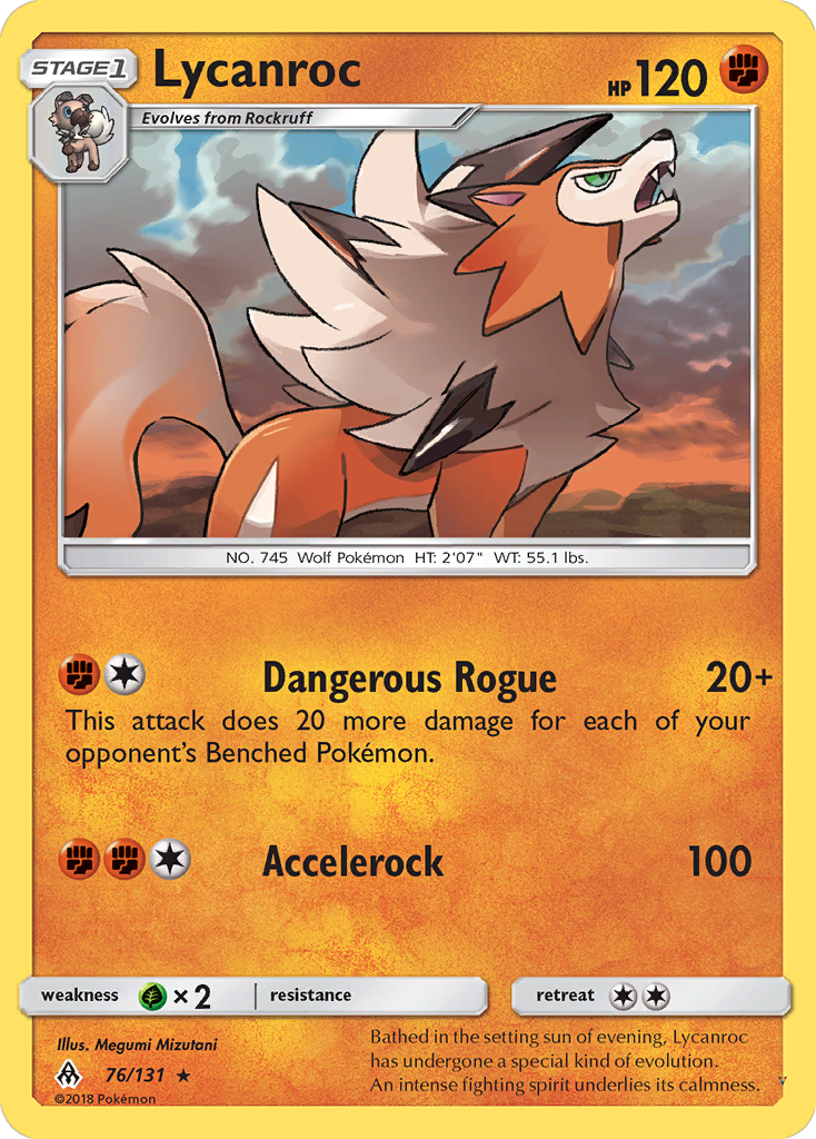 Bathed in the setting sun of evening, Lycanroc has undergone a special kind of evolution. An intense fighting spirit underlies its calmness.