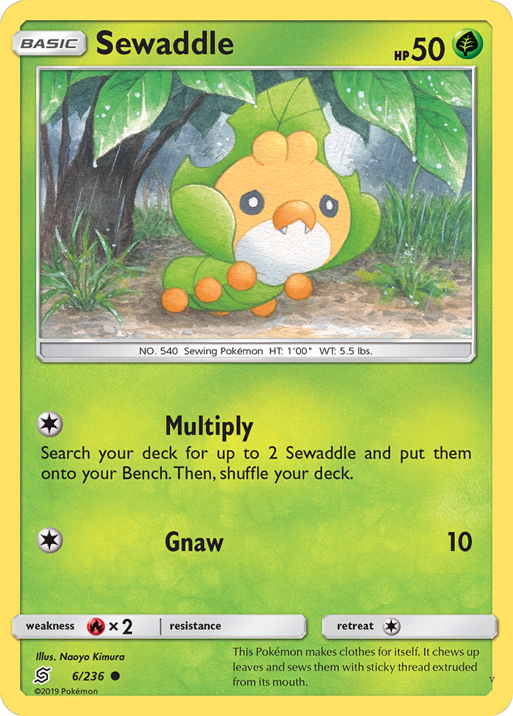 Search your deck for up to 2 Sewaddle and put them onto your Bench. Then, shuffle your deck.
