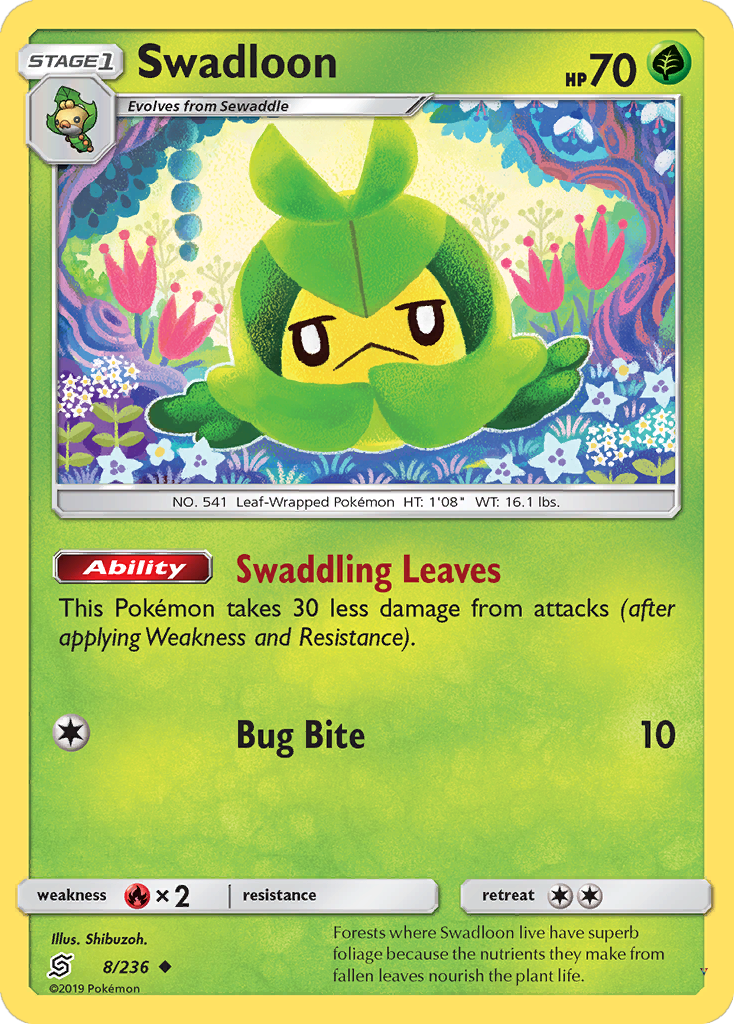 Forests where Swadloon live have superb foliage because the nutrients they make from fallen leaves nourish the plant life.