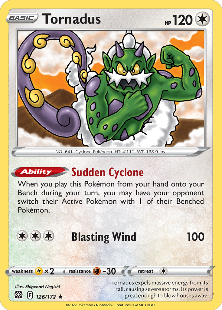 Tornadus expels massive energy from its tail, causing severe storms. Its power is great enough to blow houses away.