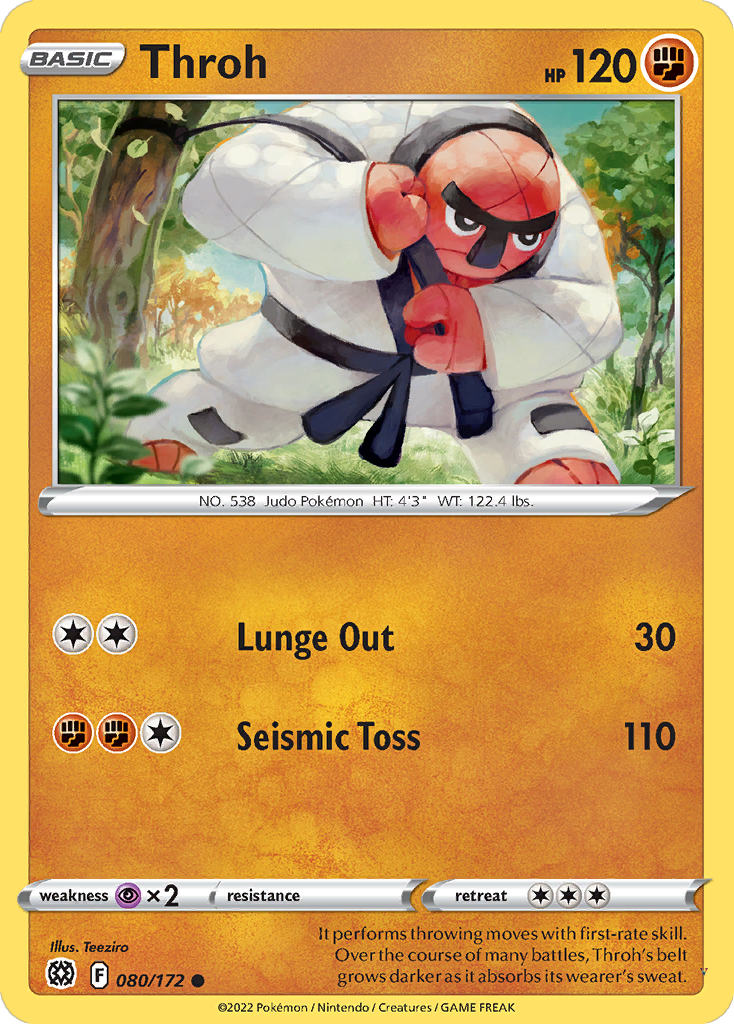 It performs throwing moves with first-rate skill. Over the course of many battles, Throh's belt grows darker as it absorbs its wearer's sweat.