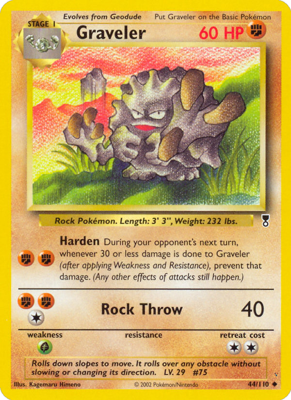 During your opponent's next turn, whenever 30 or less damage is done to Graveler (after applying Weakness and Resistance), prevent that damage. (Any other effects of attacks still happen.)