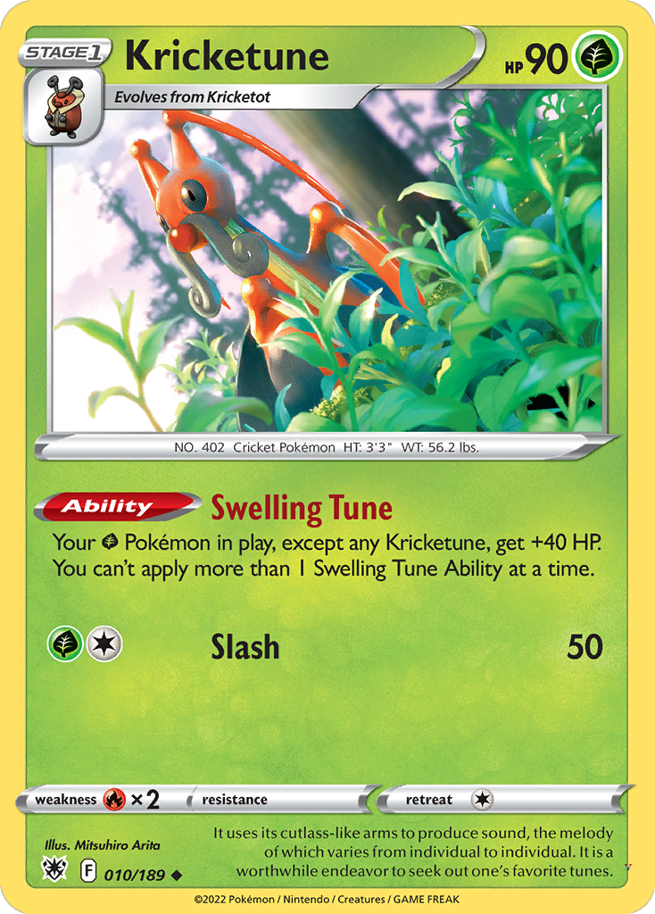 Your Grass Pokémon in play, except any Kricketune, get +40 HP. You can't apply more than 1 Swelling Tune Ability at a time.