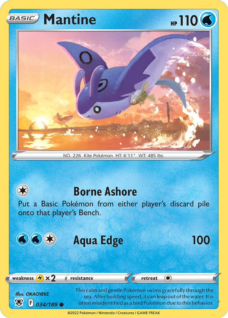 This calm and gentle Pokémon swims gracefully through the sea. After building speed, it can leap out of the water. It is often misidentified as a bird Pokémon due to this behavior.