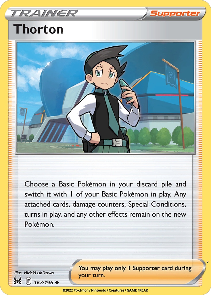 Choose a Basic Pokémon in your discard pile and switch it with 1 of your Basic Pokémon in play. Any attached cards, damage counters, Special Conditions, turns in play, and any other effects remain on the new Pokémon.