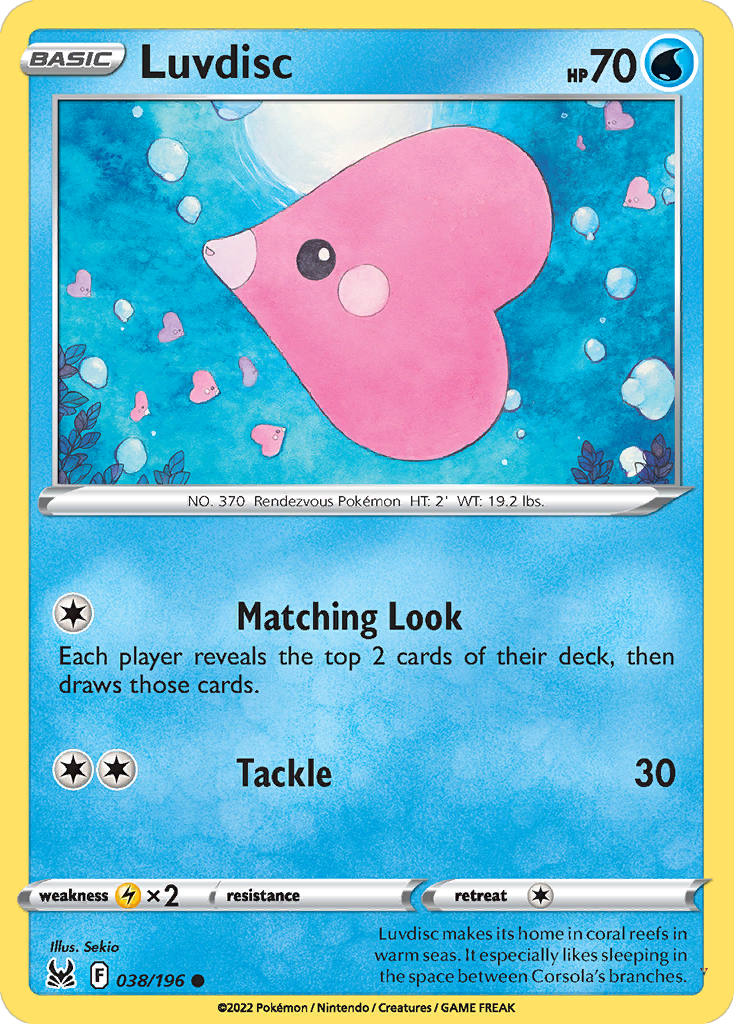 Luvdisc makes its home in coral reefs in warm seas. It especially likes sleeping in the space between Corsola's branches.