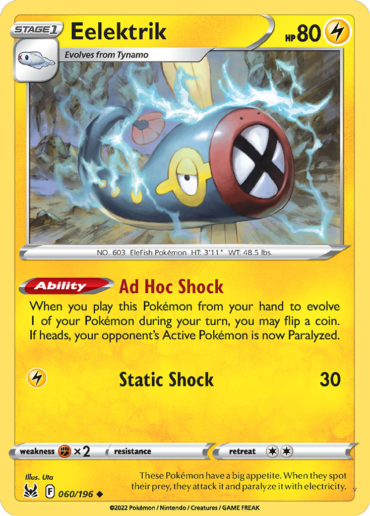 When you play this Pokémon from your hand to evolve 1 of your Pokémon during your turn, you may flip a coin. If heads, your opponent's Active Pokémon is now Paralyzed.