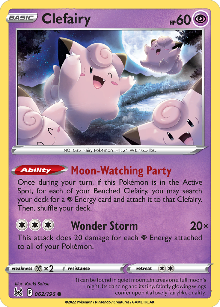 Once during your turn, if this Pokémon is in the Active Spot, for each of your Benched Clefairy, you may search your deck for a Psychic Energy card and attach it to that Clefairy. Then, shuffle your deck.