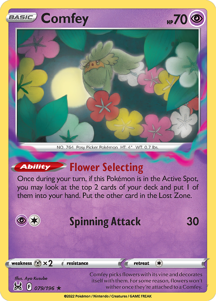 Once during your turn, if this Pokémon is in the Active Spot, you may look at the top 2 cards of your deck and put 1 of them into your hand. Put the other card in the Lost Zone.