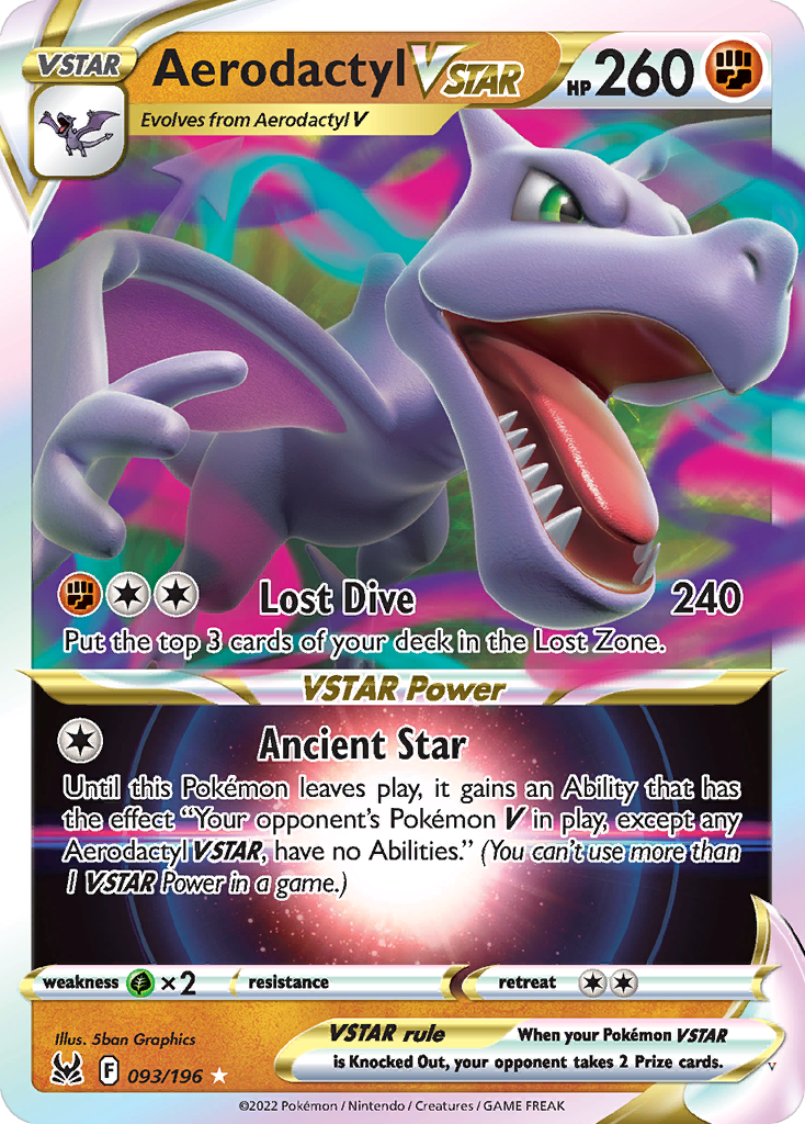 Until this Pokémon leaves play, it gains an Ability that has the effect "Your opponent's Pokémon V in play, except any Aerodactyl VSTAR, have no Abilities." (You can't use more than 1 VSTAR Power in a game.)