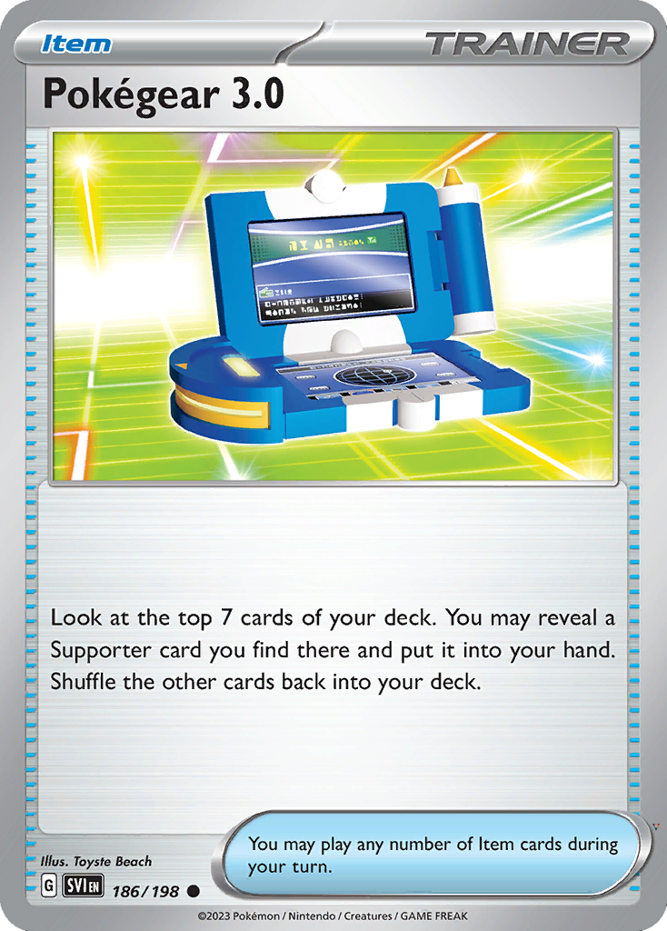 • Look at the top 7 cards of your deck. You may reveal a Supporter card you find there and put it into your hand. Shuffle the other cards back into your deck.
