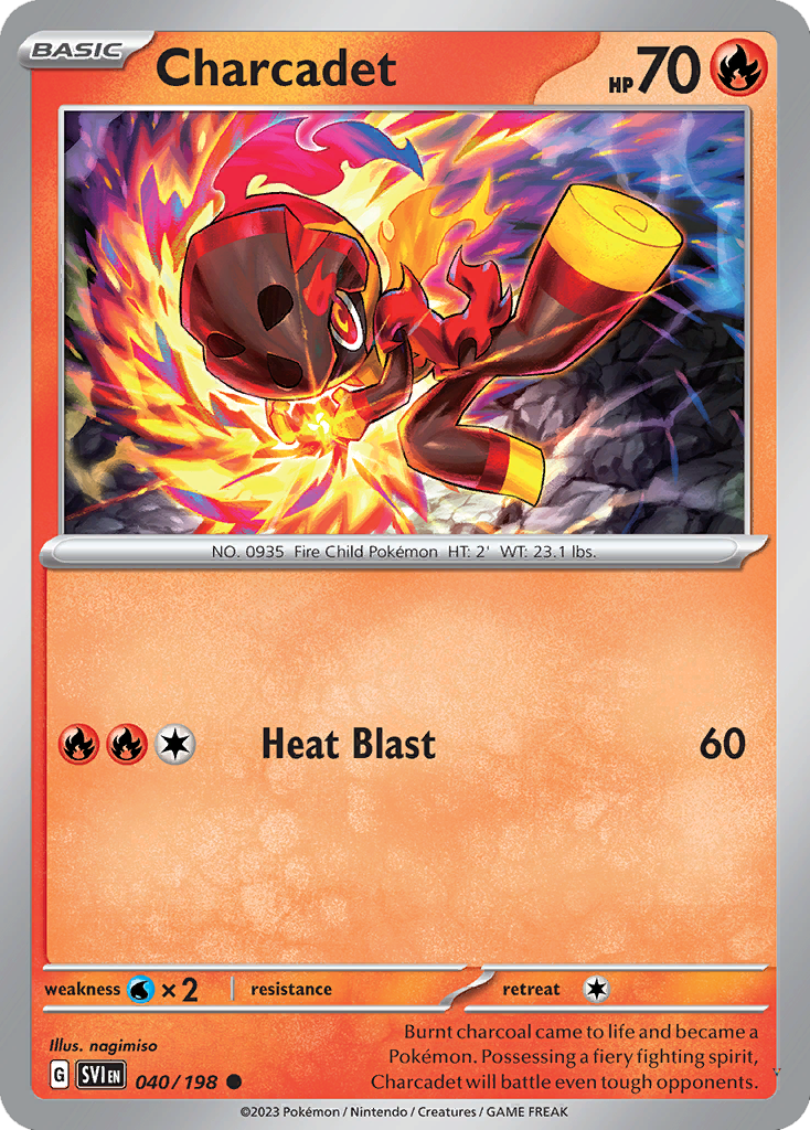 Burnt charcoal came to life and became a Pokémon. Possessing a fiery fighting spirit, Charcadet will battle even tough opponents.