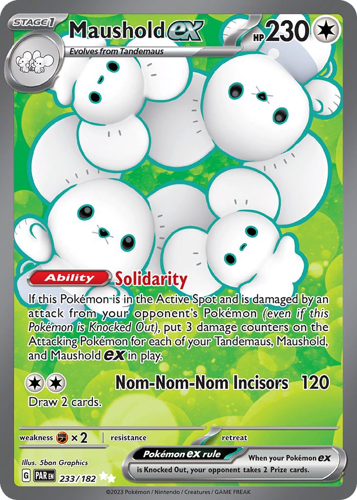 If this Pokémon is in the Active Spot and is damaged by an attack from your opponent's Pokémon (even if this Pokémon is Knocked Out), put 3 damage counters on the Attacking Pokémon for each of your Tandemaus, Maushold, and Maushold ex in play.