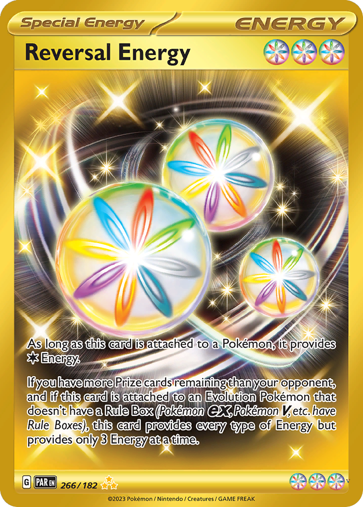 - As long as this card is attached to a Pokémon, it provides Colorless Energy. If you have more Prize cards remaining than your opponent, and if this card is attached to an Evolution Pokémon that doesn't have a Rule Box (Pokémon ex, Pokémon V, etc. have Rule Boxes), this card provides every type of Energy but provides only 3 Energy at a time.