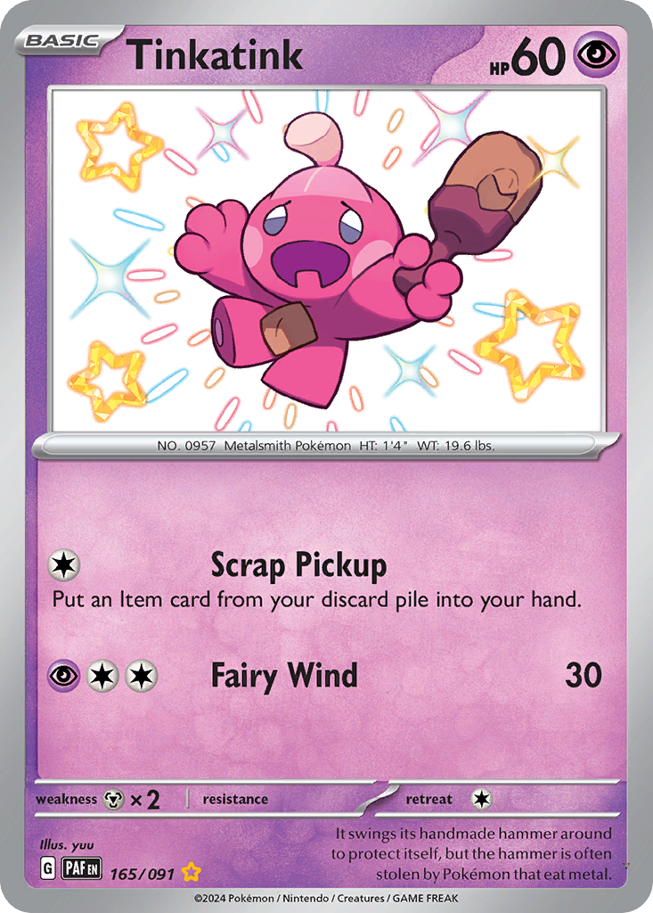 It swings its handmade hammer around to protect itself, but the hammer is often stolen by Pokémon that eat metal.