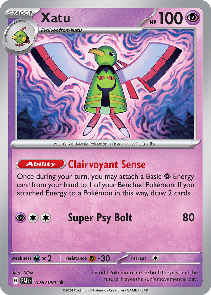 Once during your turn, you may attach a Basic Psychic Energy card from your hand to 1 of your Benched Pokémon. If you attached Energy to a Pokémon in this way, draw 2 cards.