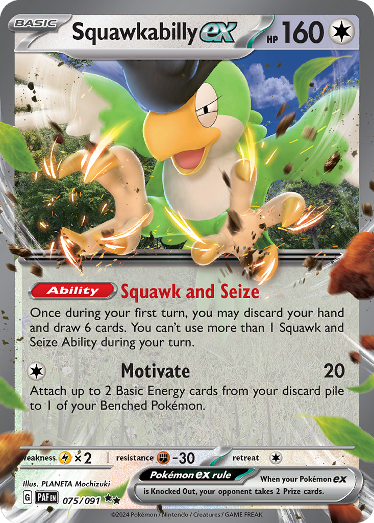 Once during your first turn, you may discard your hand and draw 6 cards. You can't use more than 1 Squawk and Seize Ability during your turn.
