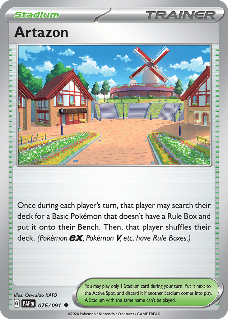 - Once during each player's turn, that player may search their deck for a Basic Pokémon that doesn't have a Rule Box and put it onto their Bench. Then, that player shuffles their deck. (Pokémon ex, Pokémon V, etc. have Rule Boxes.)