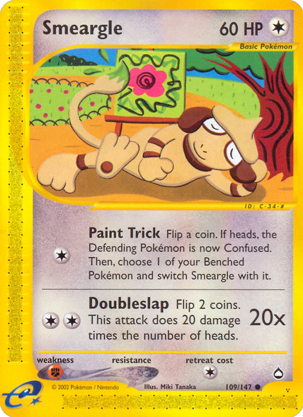 Flip a coin. If heads, the Defending Pokémon is now Confused. Then, choose 1 of your Benched Pokémon and switch Smeargle with it.