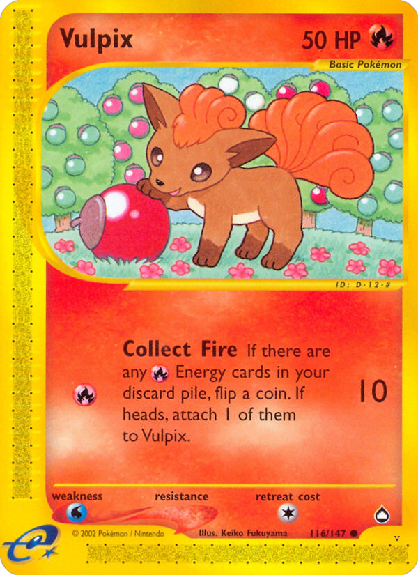 If there are any Fire Energy cards in your discard pile, flip a coin. If heads, attach 1 of them to Vulpix.