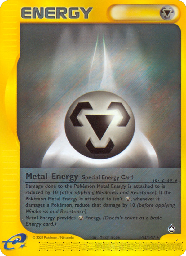 - Damage done to the Pokémon Metal Energy is attached to is reduced by 10 (after applying Weakness and Resistance). If the Pokémon Metal Energy is attached to isn't Metal, whenever it damages a Pokémon, reduce that damage by 10 (before applying Weakness and Resistance). Metal Energy provides Metal Energy. (Doesn't count as a basic Energy card.)