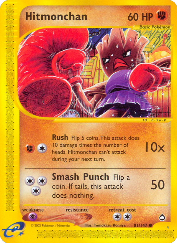 Flip 5 coins. This attack does 10 damage times the number of heads. Hitmonchan can't attack during your next turn.