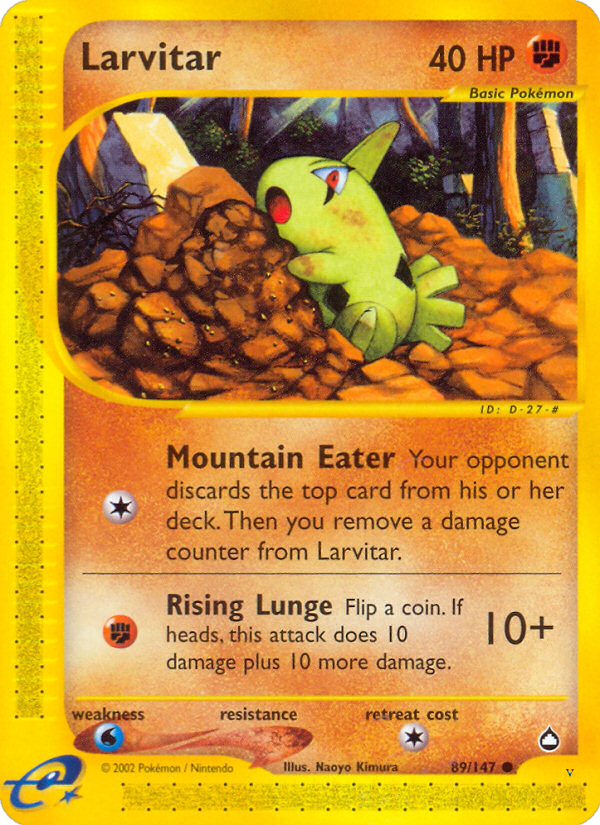 Your opponent discards the top card from his or her deck. Then you remove a damage counter from Larvitar.
