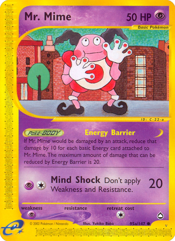If Mr. Mime would be damaged by an attack, reduce that damage by 10 for each basic Energy card attached to Mr. Mime. The maximum amount of damage that can be reduced by Energy Barrier is 20.