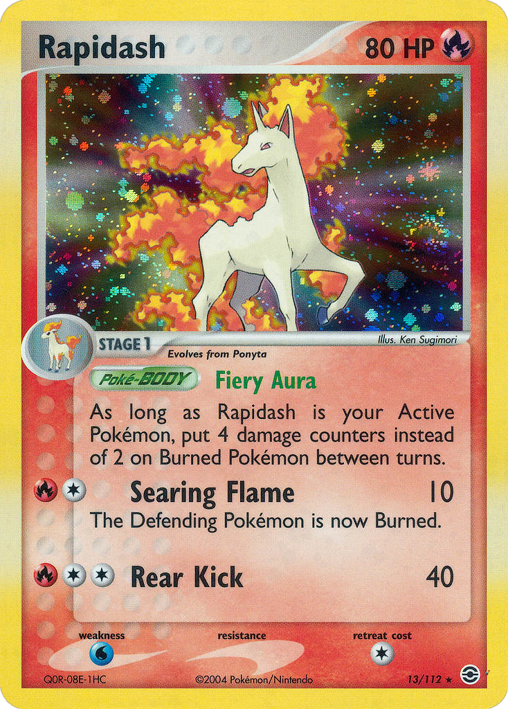 As long as Rapidash is your Active Pokémon, put 4 damage counters instead of 2 on Burned Pokémon between turns.