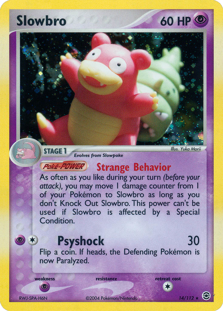 As often as you like during your turn (before your attack), you may move 1 damage counter from 1 of your Pokémon to Slowbro as long as you don't Knock Out Slowbro. This power can't be used if Slowbro is affected by a Special Condition.
