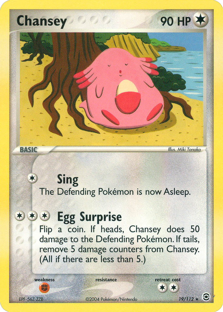 Flip a coin. If heads, Chansey does 50 damage to the Defending Pokémon. If tails, remove 5 damage counters from Chansey. (All if there are less than 5.)