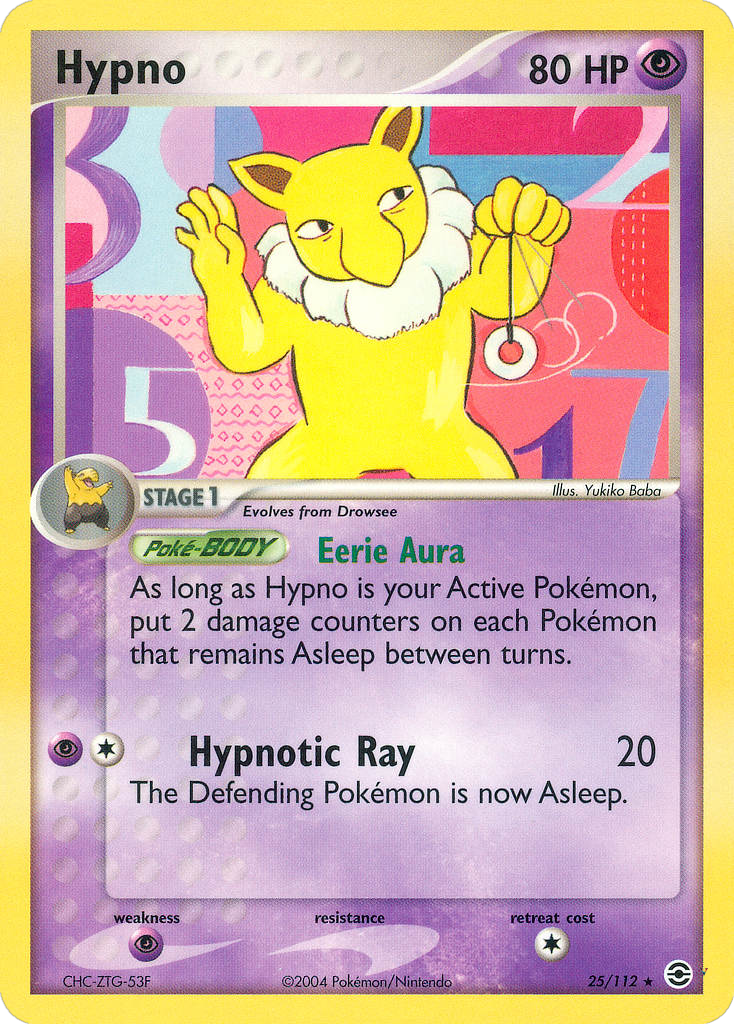 As long as Hypno is your Active Pokémon, put 2 damage counters on each Pokémon that remains Asleep between turns.