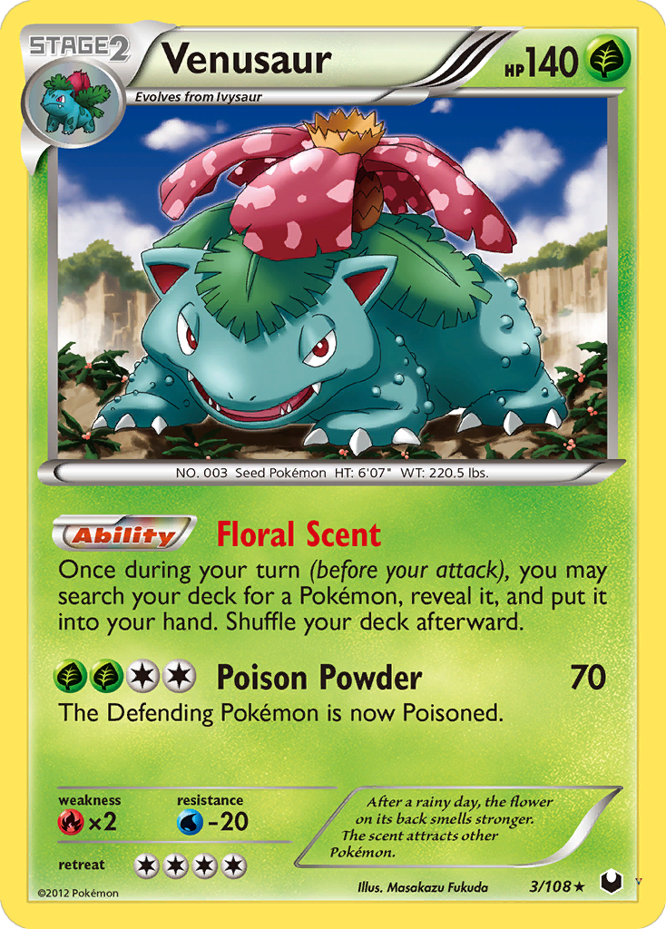 After a rainy day, the flower on its back smells stronger. The scent attracts other Pokémon.