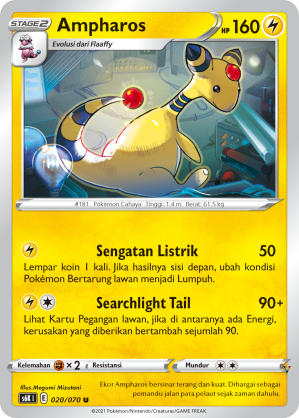Ekor Ampharos bersinar terang dan kuat. Dihargai sebagai pemandu jalan para pelaut sejak zaman dahulu.