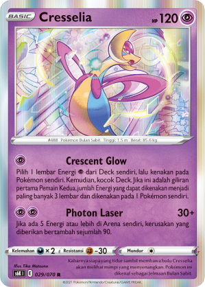 Kabarnya siapa yang tidur sambil membawa bulu Cresselia akan melihat mimpi yang menyenangkan. Pokémon ini dikenal sebagai Jelmaan Bulan Sabit.