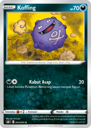 Koffing menyukai udara kotor untuk disantap. Kabarnya dahulu jumlah Koffing di Daerah Galar jauh lebih banyak daripada saat ini.