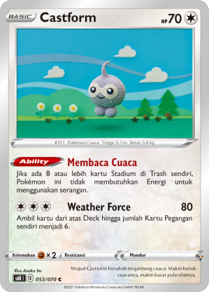 Wujud Castform berubah tergantung cuaca. Makin buruk cuacanya, makin kasar pula sifatnya.