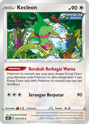 Selain saat bersembunyi, warna tubuh Kecleon juga berubah tergantung perasaan atau kesehatannya. Makin pekat warnanya, makin sehat pula Pokémon ini.