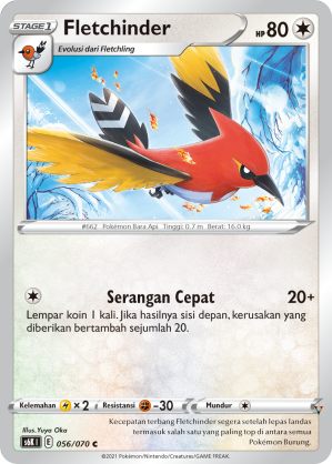 Kecepatan terbang Fletchinder segera setelah lepas landas termasuk salah satu yang paling top di antara semua Pokémon Burung.