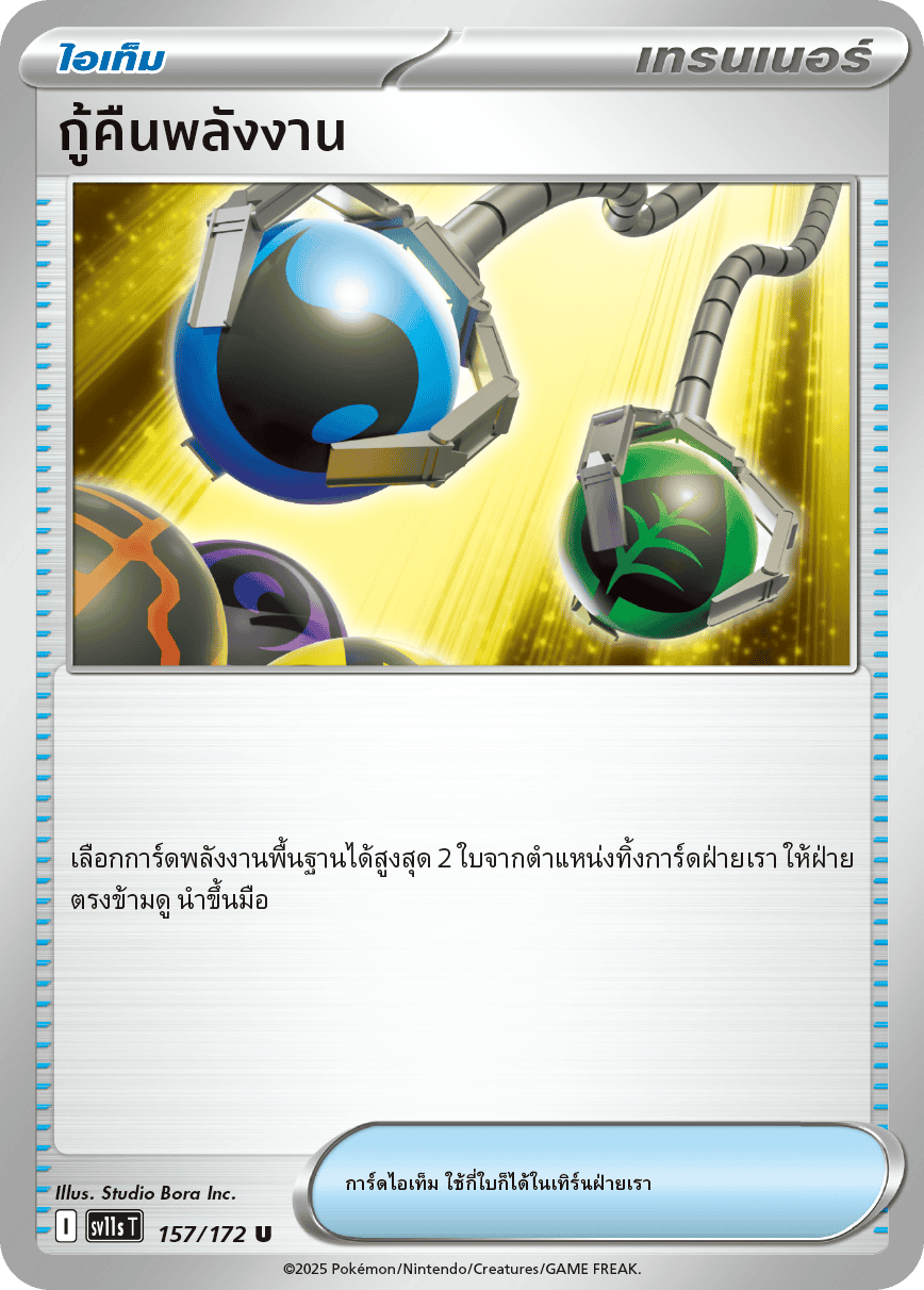 เลือกการ์ดพลังงานพื้นฐานได้สูงสุด 2 ใบจากตำแหน่งทิ้งการ์ดฝ่ายเรา ให้ฝ่ายตรงข้ามดู นำขึ้นมือ