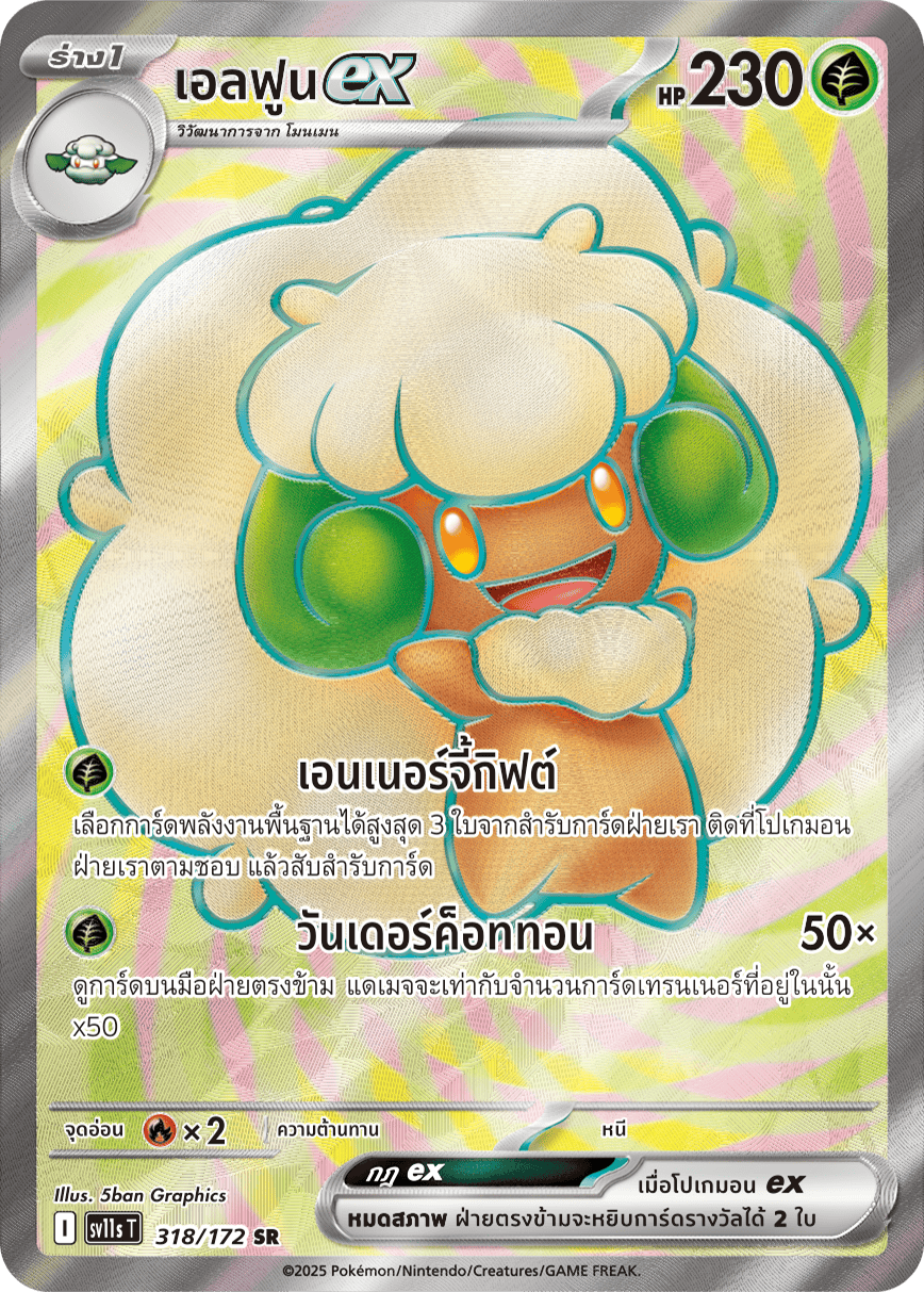 เลือกการ์ดพลังงานพื้นฐานได้สูงสุด 3 ใบจากสำรับการ์ดฝ่ายเรา ติดที่โปเกมอนฝ่ายเราตามชอบ แล้วสับสำรับการ์ด