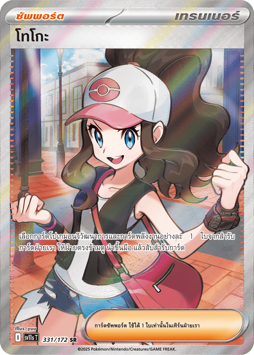 เลือกการ์ดโปเกมอนวิวัฒนาการและการ์ดพลังงานอย่างละ 1 ใบจากสำรับการ์ดฝ่ายเรา ให้ฝ่ายตรงข้ามดู นำขึ้นมือ แล้วสับสำรับการ์ด