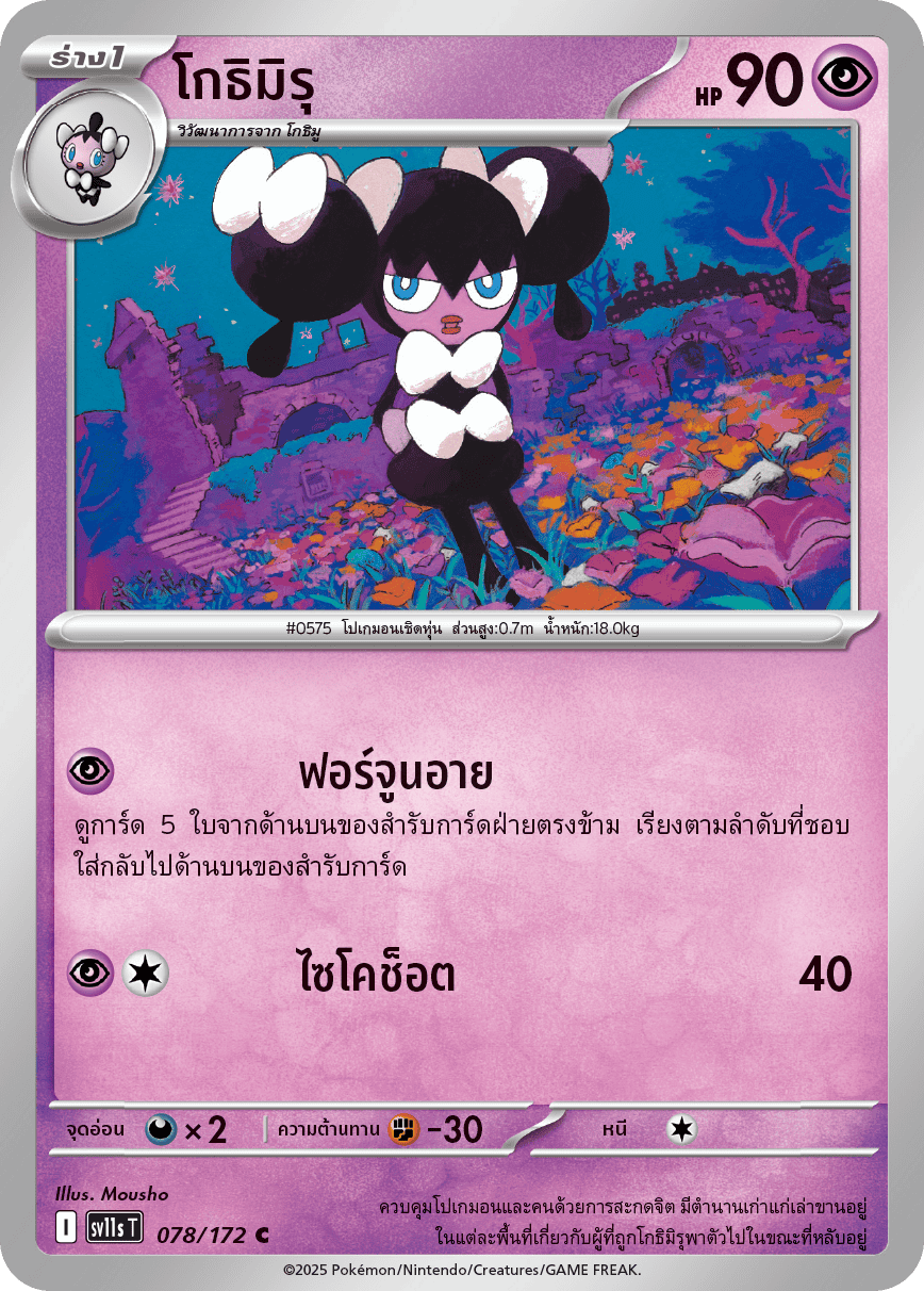 ควบคุมโปเกมอนและคนด้วยการสะกดจิต มีตำนานเก่าแก่เล่าขานอยู่ในแต่ละพื้นที่เกี่ยวกับผู้ที่ถูกโกธิมิรุพาตัวไปในขณะที่หลับอยู่